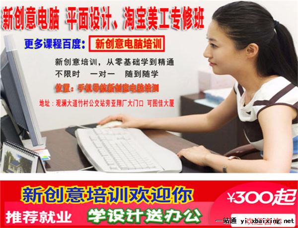 新创意电脑办公文秘、平面设计、CAD家具绘图、电脑效果专业培训学校、网上咨询报名8.8折、更多专业课程校咨询