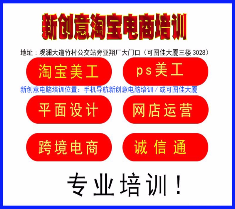 观澜清湖附近哪里有淘宝美工、平面设计实战培训学校、观澜悦新围 、大和淘宝培训、清湖市场淘宝开店培训、观澜二小、茜坑淘宝运营培训、观澜较好 的淘宝美工培训机构新创意培训零基础学会为止。