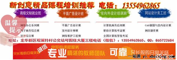 深圳观澜清湖最好的电脑办公、平面设计、CAD一对一培训,新创意常年开设课程: